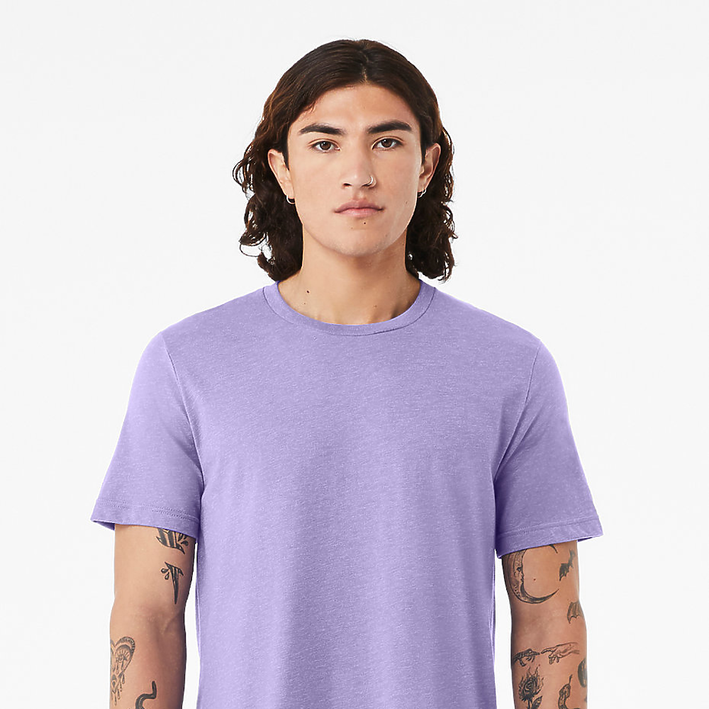 Bella+Canvas Unisex Jersey Recycled Organic Short Sleeve T-Shirt. Retail fit, side-seamed, shoulder-taping, No conventional cotton or polyester used. Tear-away label. Solid Colors: 55% Organic Airlume Combed & Ring-Spun Cotton, 45% Recycled Poly. Athletic Heather: 90% Organic Airlume Combed and Ringspun Cotton 10% Recycled Polyester.