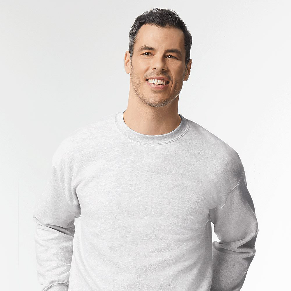 Gildan Adult 9.0 Ounce Dryblend Crewneck Sweatshirt. A true workhorse, this 9.0 ounce crew has set in sleeves, double needle stitching throughout. The quarter turned body features a 1x1 rib with spandex on sleeves and waist. Fabric is 50% US cotton/50% polyester. DryBlend technology delivers moisture wicking properties. Recycled label. Classic fit.