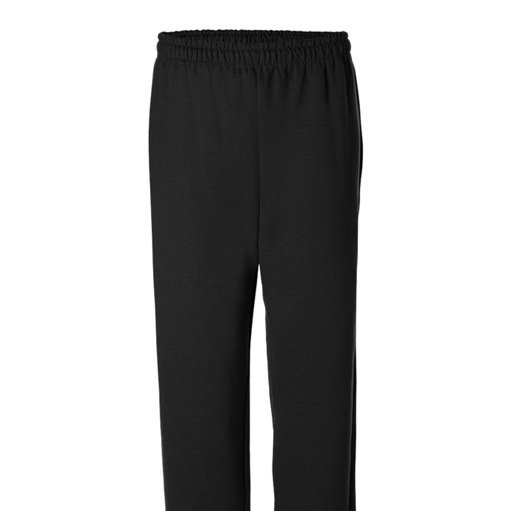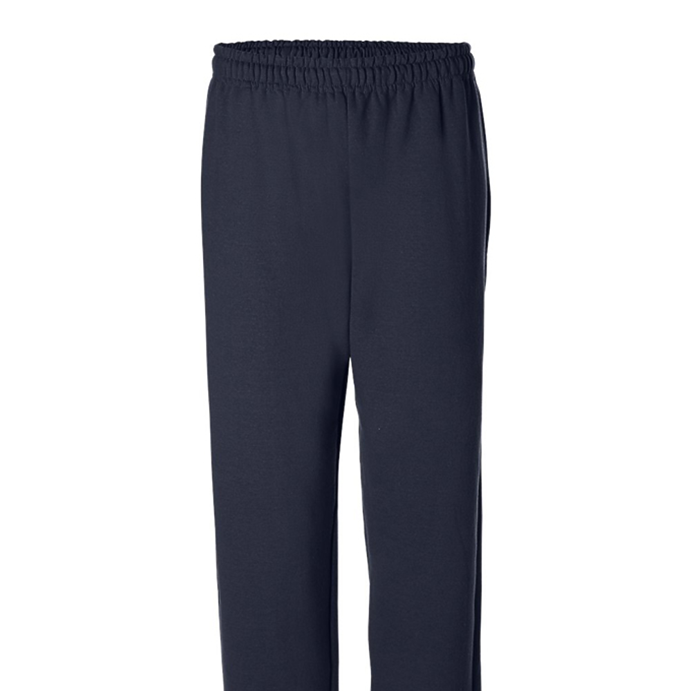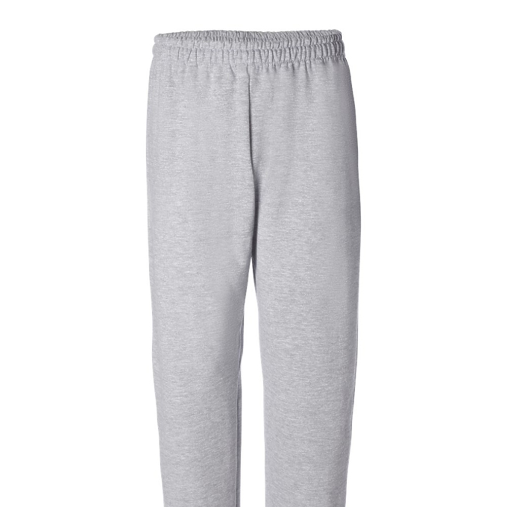 Gildan Adult 8.0 Ounce Heavy Blendâ„¢ Open Bottom Sweatpants. 8.0 ounce, 50/50 U.S. cotton/polyester preshrunk fleece knit fabric. Slightly tapered leg with open bottom. Covered elastic waistband with drawcord. Differential rise for better fit. Sideseamed. Recycled label. Classic fit.