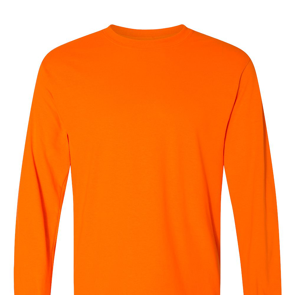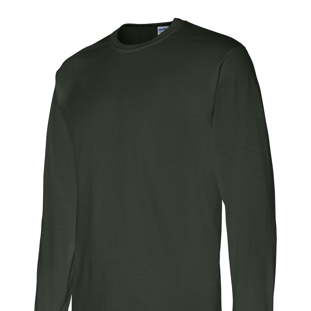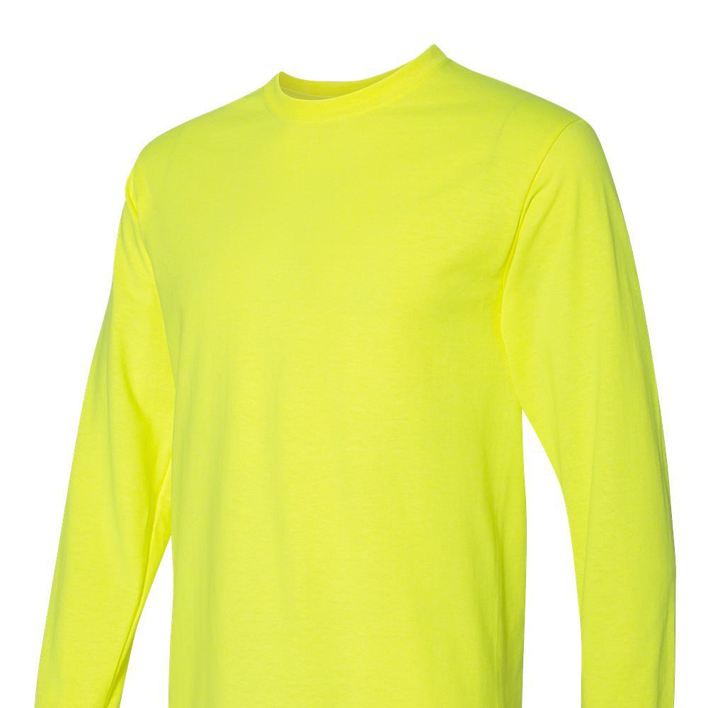 Gildan Adult 5.5 Ounce Dryblend Long Sleeve T-Shirt. The same terrific 5.5 ounce DryBlend styling quality and affordability as the GL8000, but with long sleeves, ribbed cuffs. Recycled tear away label. Safety Green*. *ANSI/ISEA 107-2010 High Visibility certified for use as background material.